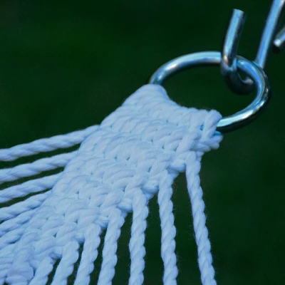 - Soft channel quilted polyester fabric with polyester rope macramé clewed ends