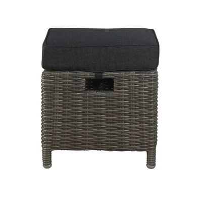 - Gray resin wicker over 100% aluminum frame with removable dark gray cushions