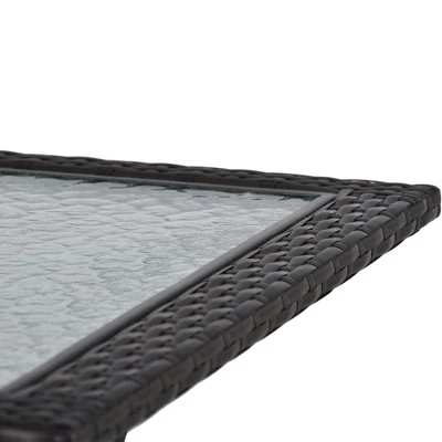- [Design with Umbrella Hole] For your convenience, the table is designed to be multipurpose. The table has a sleekly water-ripple glass top and a middle umbrella hole for shading (umbrella is not included).