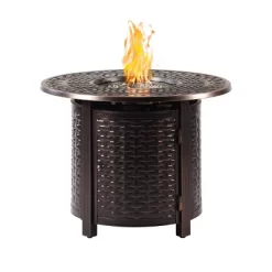 Whether your outdoor retreat is located in the mountains, on the coast, or somewhere in between, this fire table set will extend your evenings with friends and family around the fire. With this addition you can enhance your outdoor setting with even more ambiance and relaxation. This fire table set comes with an Outdoor Aluminum 44 in. Round Fire Table Set with Four Deep Seating Swivel Rocking Chairs, Fire Beads, Lid, Propane Tank Cover and Table Fabric Cover. The dimensions for the fire table are: 44″ L x 44″ W x 24.5″ H, 71.5 lbs. Each chair dimensions are: 28.4″ L x 33″ W x 37.8″ H, 29 lbs. The chair seat is 12.6″ H from the seat to the floor.