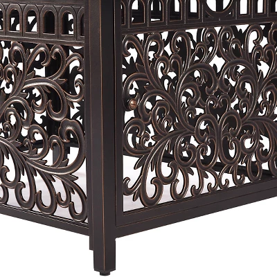 - This premium fire table set has a black antique copper finish applied via durable powder coat