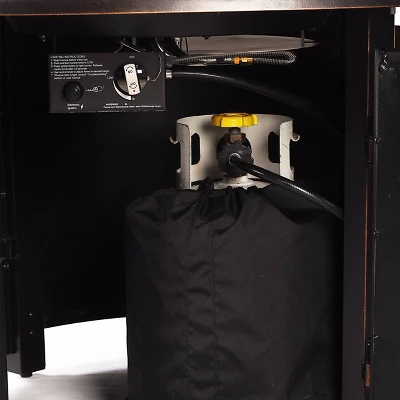 - Comes with a swinging door that easily stores your standard propane tank