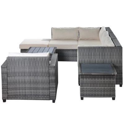 Turn your backyard into an outdoor getaway with our 8-Piece Wicker Patio Set. Designed with versatility in mind, each set comes with a 2 seater sofa, lounge sofa, coffee table and side sofa chair. Instantly create a cohesive sectional by simply pushing the 2 seater sofa and lounge sofa together, or separate them if you want your patio set to cover a larger area of space. Crafted with thick woven rattan wicker weaving reinforced with rust resistant steel, this patio set is resistant to water, cracking, splitting and sun rays so it can last you and your family for years to come. Lean back and relax for hours on end with the thick high density foam cushions upholstered in soft fabric covers that are formulated for easy spot cleaning, while the spacious design comfortably sits 5-6 people for plenty of room for your family and guests. This patio set is the perfect addition to backyards, patios, poolside, gardens and any other outdoor spot that needs a little polishing up.