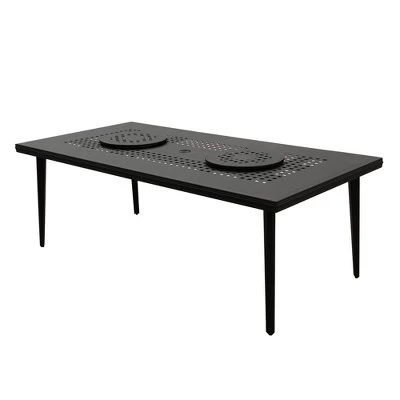 - Modern Ornate Outdoor Mesh Aluminum 84-in Large Black Rectangular Patio Dining Set with Two Lazy Susans and Eight Chairs