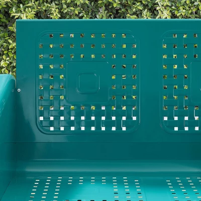 Glide back into lazy summer afternoons with the Bates Loveseat Glider. This vintage-style loveseat comes in a variety of vibrant colors, offering a fun outdoor lounging experience. The back features a unique basket weave design that allows air to circulate, and the base has a smooth gliding mechanism for relaxing in comfort. Made of durable steel, this glider has a powder-coated finish that resists rust and sun fade. The Bates Loveseat Glider is sure to add a dash of retro fun to your porch or patio.