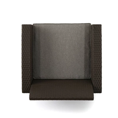 WICKER-LIKE TEXTURE: Our chat set mimics an elegant woven design that brings a homey atmosphere to your outdoor space. Our polypropylene material uses a 3-D pattern to create a texture that has the appearance of wicker and is also made to withstand outdoor weather without rusting or corroding.