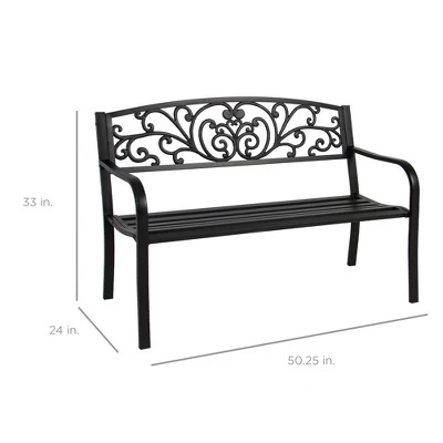 Enjoy sunny afternoons from your yard or patio with an elegant bench that complements any outdoor space. Floral accents ornate your bench for a charming, old-fashioned touch. This clever modern design is lightweight enough to easily move as needed, yet sturdy enough to hold 3 people, up to 400 lbs.