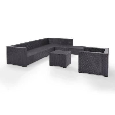 Entertaining outdoors is made effortless with the Biscayne 6pc Sectional. Every piece of the set has a durable powder-coated steel frame covered in beautiful all-weather resin wicker. The sofa, armchair, and ottoman offer thick cushioned seats with moisture-resistant covers, while the coffee table provides the perch for a cool drink. Crafted with a flexible modular design, the Biscayne sectional set provides a variety of seating configurations.