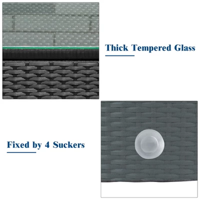 - Table with Tempered Glass Top: Equipped with a coffee table, you can place some foods or drinks on it and chat or eat with your friend. The tempered glass on the table is thick with the function of heat resistance and shock resistance. In addition, the glass is fixed by four suckers so that it won’t move when you are using the table.