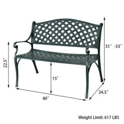 Our 40” outdoor aluminum garden bench will be a great additional to your garden, patio for its antique style. Be made of lightweight aluminum frame, this garden bench is durable and sturdy. The decorative garden adds elegance and a fashionable look that will fit perfectly with any outdoor decor. Add a touch of class to your yard with this beautiful outdoor bench. Do not hesitate to buy one!