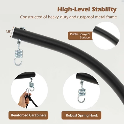 - Heavy-Duty Metal Stand: The swing stand offers a perfect place to hang the swing chair. It’s constructed of heavy-duty and rustproof metal frame for high-level stability. And the reinforced carabiners and robust spring hook offer extra security.