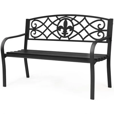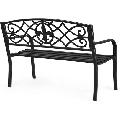 Combining aesthetics and function, our exquisite garden bench is an ideal choice for backyard and garden. Made of weather-resistant powder coated steel, the bench has a strong frame structure to ensure the durability and sturdiness for all year-round use. Meanwhile, the thick legs and non-slip pads provide you with a more stable and safe place to sit. Composed of 6 steel slats, it not only provides powerful support, but also prevents water accumulation in rainy days. The spacious seat allows you to invite one or two friends to enjoy the sunset. Besides, round armrests and ergonomic backrest can bring you maximum comfort. Moreover, our bench with elegant pattern is a perfect addition in your backyard, balcony, deck or park. Do not hesitate to buy it.