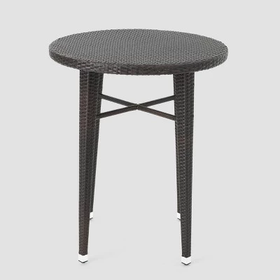 Add to your current setup with this Christopher Knight Home Dominica Round Wicker Bar Table. Featuring a pub height table, this compact table works well on a patio or next to your swimming pool. Stylishly designed with a wicker table top and iron frame, this table is weather resistant and great for any patio décor. Use it by itself for your guests to have a place to set their drinks while mingling or add a few bar stools and use it for an intimate outdoor dining table. You will love the flexibility of this Christopher Knight Home Dominica Round Wicker Bar Table.