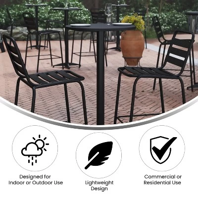 Take cocktail hour up a notch at your venue with this bar table with smooth designer looking top. Perfect for storing many, the top flips up with a touch of a button and is easy to clean. Transport with ease as this bar height dining table has a lightweight aluminum base to quickly move indoor and outdoors for your events. Create a formal setting by covering this table in a long table cover or use as is outdoors on the patio. With seating for two, you can pair with two aluminum bar chairs or have guests stand around the table with a drink while they wait to be seated. When using outdoors, care should be taken to protect from long periods of wet weather.