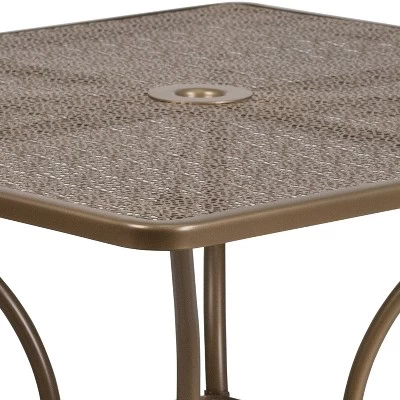 Brighten up your patio space with this beautiful black patio table. The rain flower printed top is very appealing. With the included umbrella hole, you can purchase your desired umbrella to shield you from the sun. This table will enhance your bistro, cafe, restaurant, hotel or home patio space. The table was designed for all-weather use making it a great option for indoor and outdoor settings. For longevity, care should be taken to protect from long periods of wet weather. Pair this table with our rain flower design chairs to complete the look.