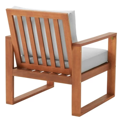 Add style and sophistication to your outdoor living space with this attractive Eucalyptus Wood Conversation Set. The set includes two outdoor chairs, 2-seat bench and a cocktail table. Frame is made from durable eucalyptus wood that will stand up to varying weather conditions, and the generously padded all-weather cushions will provide luxurious comfort all day long. The neutral wood finish and gray colored cushions will easily match with any accent pieces in your outdoor space creating the perfect outdoor entertainment space!
