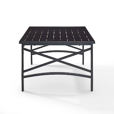 Bring convenience to entertaining al fresco with the Kaplan Coffee Table. Durably crafted from all-weather powder-coated steel, this coffee table has a versatile design that pairs with a variety of outdoor seating. Classic X design on sides and a slatted tabletop will make the Kaplan Coffee Table a perfect centerpiece for your patio or deck.