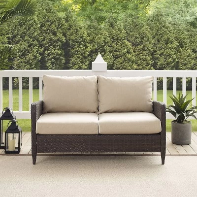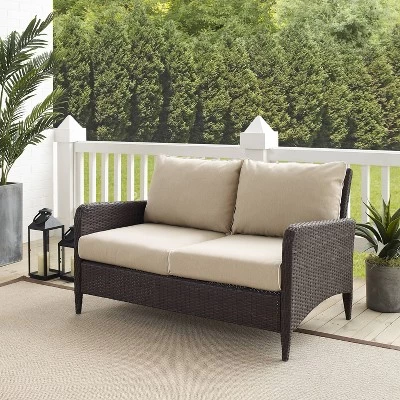 The Kiawah Loveseat will transform your outdoor area into an intimate conversational setting. You’ll enjoy plush piped cushions, deep seats, and stylish design, making your outdoor retreat oh so inviting. All-weather resin wicker is elegantly woven over a durable, powder-coated steel frame and paired with UV/fade resistant cushions to provide comfort and durability. On its own or paired with other outdoor seating, the Kiawah Loveseat will be your go-to for outdoor lounging and entertaining.