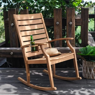 - ADDITIONAL BOTTLE HOLDER Keep your beverages reachable with the bottle holder on the armrest of outdoor rockers.