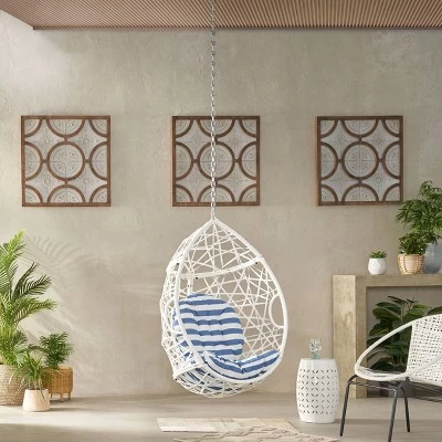 Take a little time to yourself and enjoy the smooth swaying motions of our hanging chair. Featuring a stunning teardrop shape, this charming accessory not only gives your space a refreshing transitional look but also offers incredible comfort. This is constructed with beautifully wrapped wicker weave and a sturdy metal frame, allowing you hours of much-needed leisure whenever you need it. Finished with plush water-resistant cushions, this piece can be used both indoor and outdoor, making this a truly extraordinary addition to your lounge area.