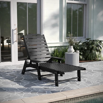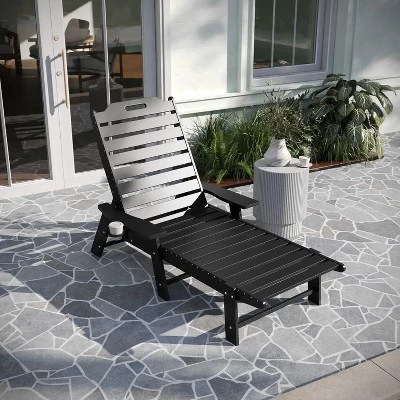 Total comfort can be delivered right to your door with this all-weather Adirondack style adjustable lounge chair with cupholder. Boasting a supportive back that can be adjusted to 5 recline positions, an elongated seat to cradle your lower extremities, and extra wide arms with a cupholder, this chair is ideal for any space. All weather HDPE mimics the look of wood, but is stronger and will not rot, chip, or peel and the UV fade resistance allows year round use. Assembly is quick and easy and a damp cloth takes care of any cleanup. Available in multiple colors, feel free to mix and match or maintain a uniform color to suit your personal taste.