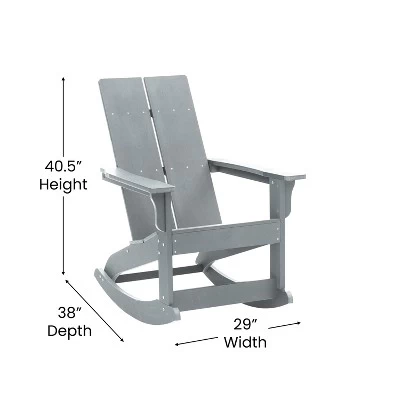 Elegance that’s easy to see. Welcome to your moment of relaxation, Adirondack style. This modern version of the classic design is made from UV treated polyresin that is durable and easy to care for while still maintaining the classic expectation of an Adirondack. Large vertical slats are pleasing to the eye and to the back, providing roomy comfort in any relaxed setting, indoors or outdoors. The finely curved runners are the ideal marriage between function and style, and are safe on multiple flooring surfaces.