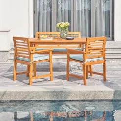 Waimea 5pc Honey Slatted Eucalyptus Wood Patio Dining Set With Cushions – Vifah