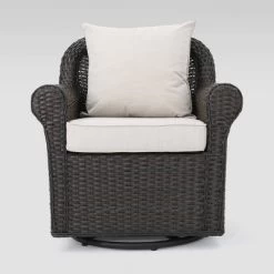 Venti 5pc Wicker Swivel Club Chairs And Fire Pit – Dark Brown/Beige – Christopher Knight Home