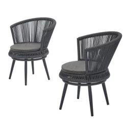 3pc Outdoor Wicker Conversation Set With Cushions – Dark Gray – GODEER