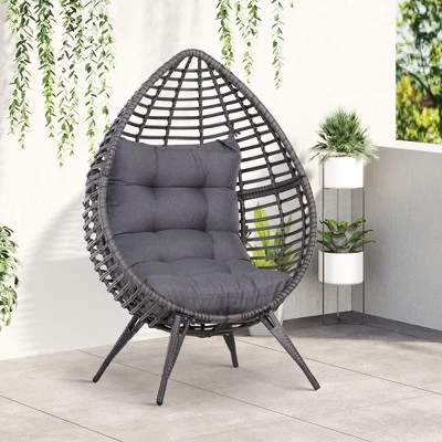 - Wicker Egg Chair: Featuring an elegant egg/teardrop design, this indoor outdoor wicker egg chair wraps you in a pillow, giving you a cozy cubby to lounge in. Its eye-catching egg shaped boho aesthetic makes it an excellent choice for indoor spaces like a living room, sunroom, bedroom, or dorm. Its weather-safe design makes it durable for the patio, porch, backyard, or garden.