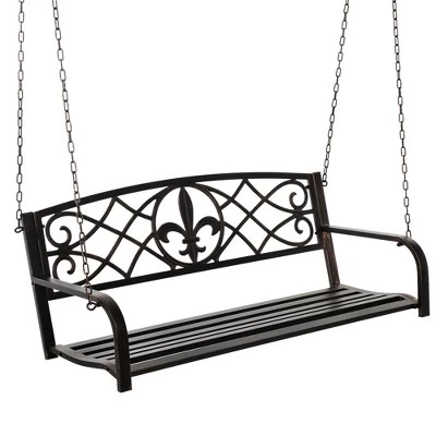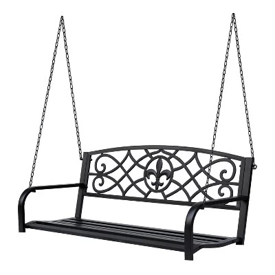 - VERSATILE HANGING: The Outsunny Outdoor Steel fleur-de-lis garden swing has versatile hanging options. Hang from the underneath of your patio, backyard, gazebo or on a swing frame.