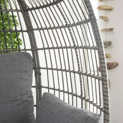 Bring an effortless sense of style and comfort to your outdoor backyard or interior space. This gorgeous egg shape chair is constructed with a delicate wrapped wicker with a sturdy steel frame. The deep arch and thick water-resistant padded cushions ensure a soft and spacious surface for you to sink into, and easy to maintain. Giving you an extraordinary addition to