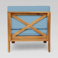 Brava 3pc Acacia Modular Loveseat And Table Set – Teak/Blue – Christopher Knight Home