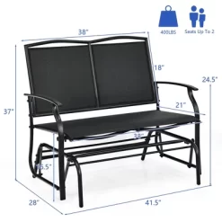 Costway Patio Glider Rocking Bench Double 2 Person Chair Loveseat Garden GreyBlack