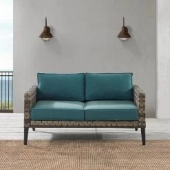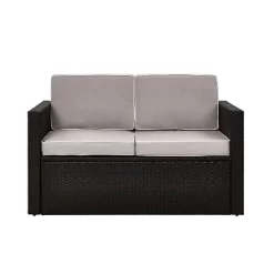 Palm Harbor Outdoor Wicker Loveseat In Brown With Gray Cushions – Crosley