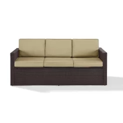 Palm Harbor Outdoor Wicker Sofa In Brown With Sand Cushions – Crosley