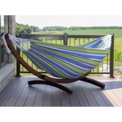 The Hamptons Collection 110” Blue Striped Brazilian Style Hammock With A Steel Hammock Stand