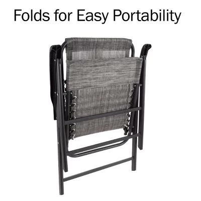 - SET OF 2 FOLDING CHAIRS – These gray chairs make comfy camping furniture or extra seating for your next barbeque, and fold for easy transport or storage. Keep them on your patio all season long or stash them away until you need outdoor seating.