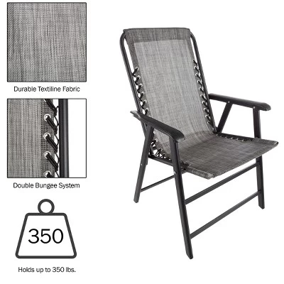 - COMFORTABLE SUSPENSION – These chairs feature a double bungee system that uses two elastic cords to connect the Textilene seat and frame, cradling you in comfort so you can relax and enjoy nature without roughing it.