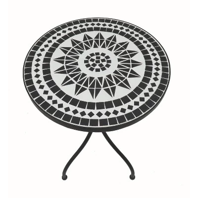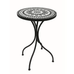 Update your outdoor space with the high-contrast black and white design of this mosaic tile side table. Perfect for the patio or deck, this petite table provides a central flower medallion with three concentric rings hat create a stylish border. The table sits on an iron pedestal base with graceful curves for a modern look and feel. Add a small flower pot or serve refreshments to friends and family. This side table measures 14 inches wide x 14 inches deep x 21 inches high. Saint Birch’s mission is to help everyone create a better home, where one can find affordable style and comfort. We strive to ensure every customer’s experience with our products is warm, worry-free, and comfortable.