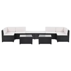 10pc Wicker Patio Sectional Seating Set With Cushion – Black/Beige – GODEER