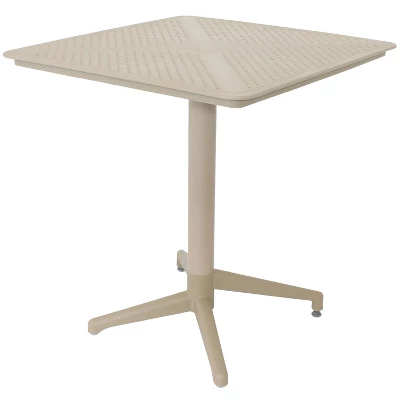 Add contemporary charm to any outdoor or indoor space with this Bellemead dining set. This set includes 4 chairs with a dynamic, x-cross design on the back, and a square table to match. The chairs feature an appealing cross-back design while being ergonomically comfortable and neutral-toned, sure to complement any existing decor. The fiberglass-reinforced polypropylene construction ensures all-weather strength and durability against the elements outdoors. The minimalist-inspired table has a fold-down top for easy storage and is also designed to last with a resin top and base as well as aluminum feet. Get comfortable conversation space for the patio, garden, or balcony to enjoy light, summer breezes effortlessly with friends. Enjoy delicious dinner or refreshing drinks anywhere while this fun, cute, and versatile set creates an inviting space, sure to complement any existing decor or aesthetic. Place indoors or by the pool for more versatile eats and relaxation with loved ones.