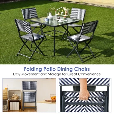 - Convenient to Use: The installation of these set of 4 patio dining chairs is not needed, which makes them ready to use. Just take them out of the box, and then share the happy moments with your friends and family. Besides, the smooth surface is easy to clean.