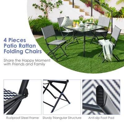 Sit on these set of 4 patio rattan chairs to enjoy outdoor leisure time!
