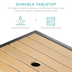 - Designed to be outdoor safe and rustproof. Tabletop can hold up to 44 lbs.