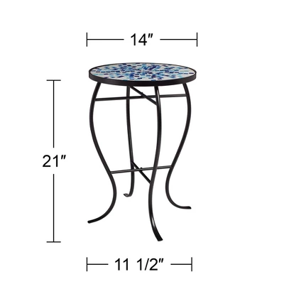 - Blue mosaic inlay top. Black finish metal construction. Gracefully curved legs.