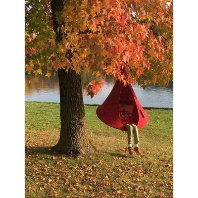 This red child friendly cacoon chair is perfect for your kids to relax and play in. Hang this from a tree or from the ceiling in your home. Your kids will love this hanging chair! They can read a book, take a nap or play with their toys in this hanging chair.Features:Red child friendly hanging cacoon chairFits up to two kids Comes with a bag for easy storage For hanging chair comes with a nylon hanging system and a carabiner Maximum weight capacity is 440lbs Can be used indoors or outdoorsDimensions: 48”H X 48”W x 48”LMaterial(s): polyester, cotton