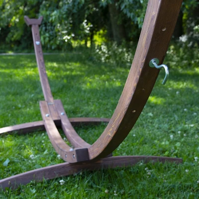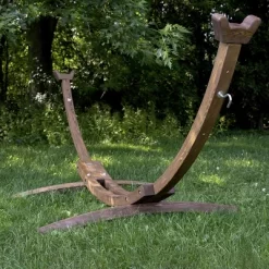 The 10ft Solid Pine Arc Stand is a perfect fit for Vivere’s large Authentic Brazillian Cotton Hammocks. Made with solid pine, its rounded square construction makes a design statement that fits with a rugged aesthetic but also complements a perfectly manicured space. This stand provides the desired stability needed for Vivere’s double hammocks, rating up to 450s. The laminated surfaces are finished with a high performance natural wood oil sourced in Europe to protect and maintain this stand.
