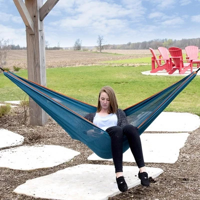 Unwind in this ultra lightweight honey-comb mesh hammock. Pack it into the built-in drawstring pouch and take it with you wherever you go. String it between your favourite trees with Vivere’s Ultra-Lite Tree Straps or pair it with Vivere’s 9′ Universal Hammock Stand.